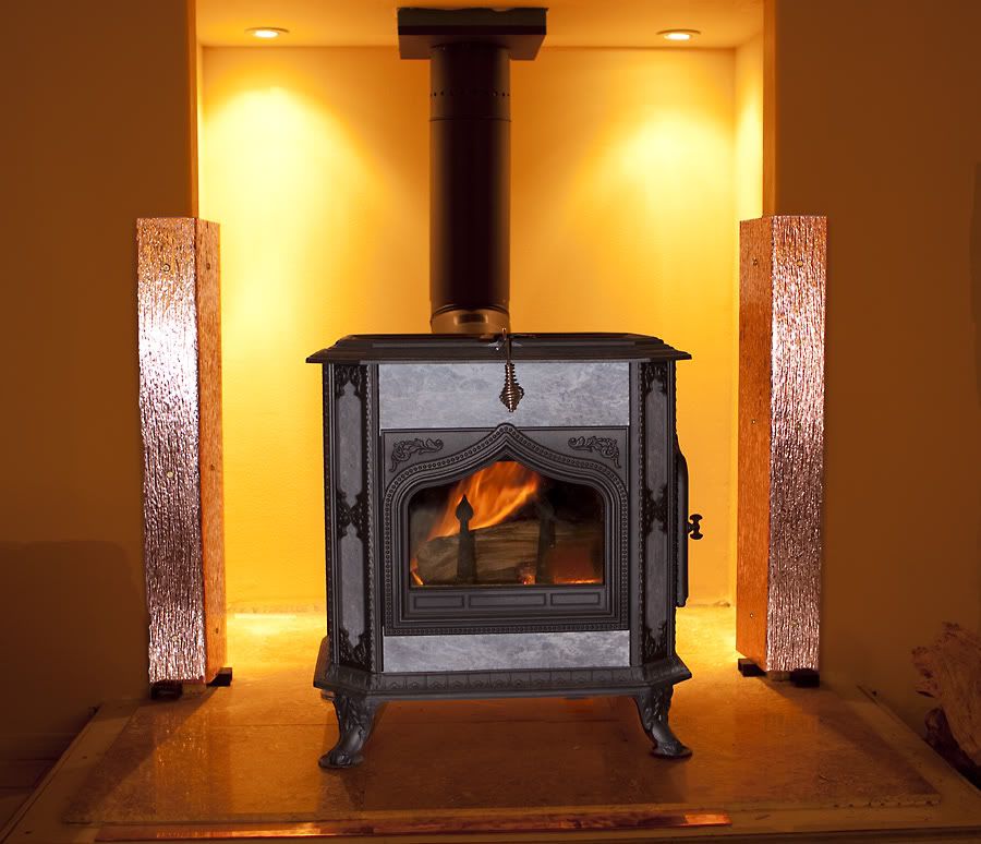1982 wood stove with sheet metal. Perhaps the simplest heat shield is made of 28 gauge sheet metal that covers all parts of the wall that are less than 36 inches from the wood stove. So you insulate the fire and direct the heat to where it s needed the pan. Work gloves are important this involves lots of sniping of sheet metal. Both 2 hole camp stoves have a flue size of 5 but also come with a 5 6 increaser.