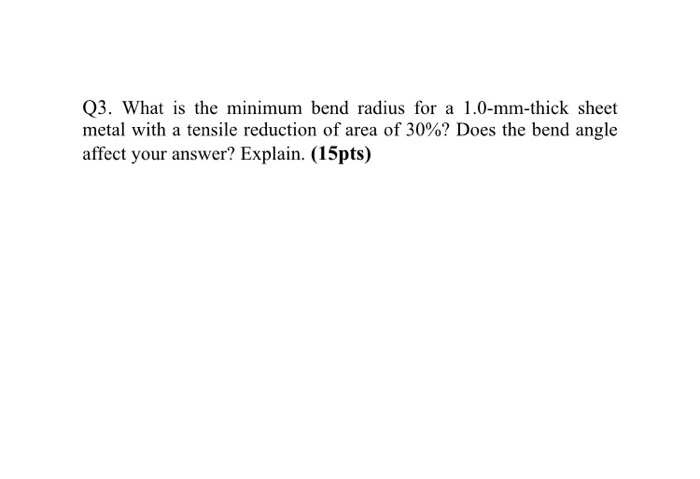 The gauge inside radius die opening and minimum flange length are all interconnected through different equations and relationships the air bend force. I can now see that the minimum flange length is 8 5 mm for such a bend so i have to keep it in mind when designing. It is most economical to use a single bend radius throughout the design but if necessary you can utilize multiple radii. It s true that the harder and thicker the plate is the greater the minimum bend radius.