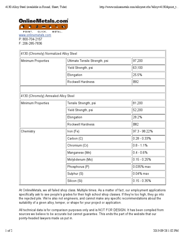 4130 Sheet Metal Properties