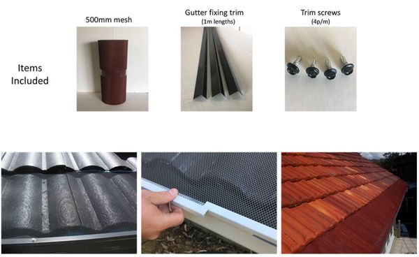 This kit is designed specifically for tile roofs it contains 10m of 500mm wide mesh along with 10m of trim and screws to secure everything in place.